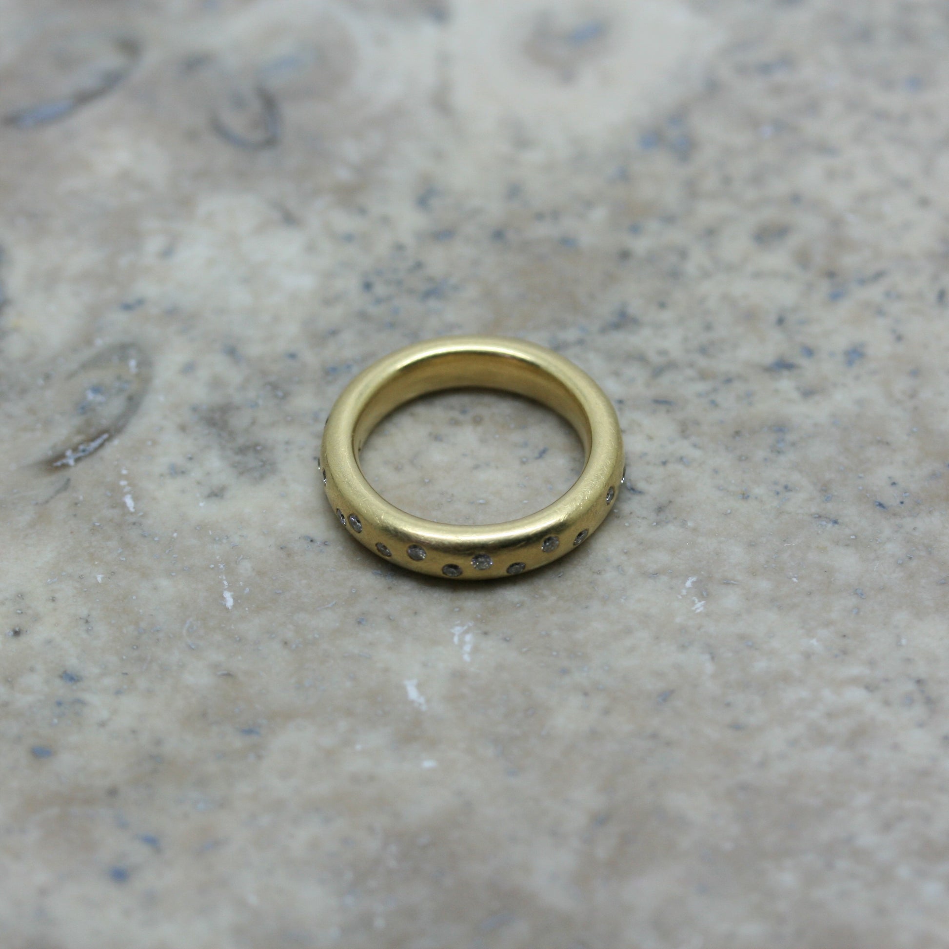 White Diamonds set randomly on this substantial 18ct yellow gold band