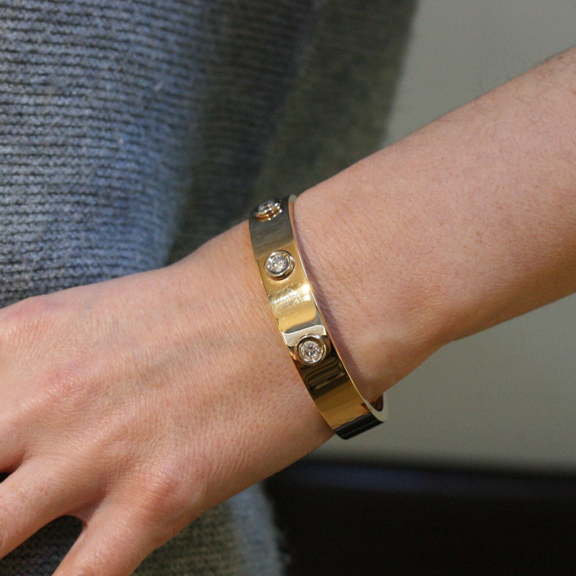 This bangle is a showcase for Adams skill and expertise in all things jewellery related, made in 18ct rose gold and accentuated with 18ct white gold.