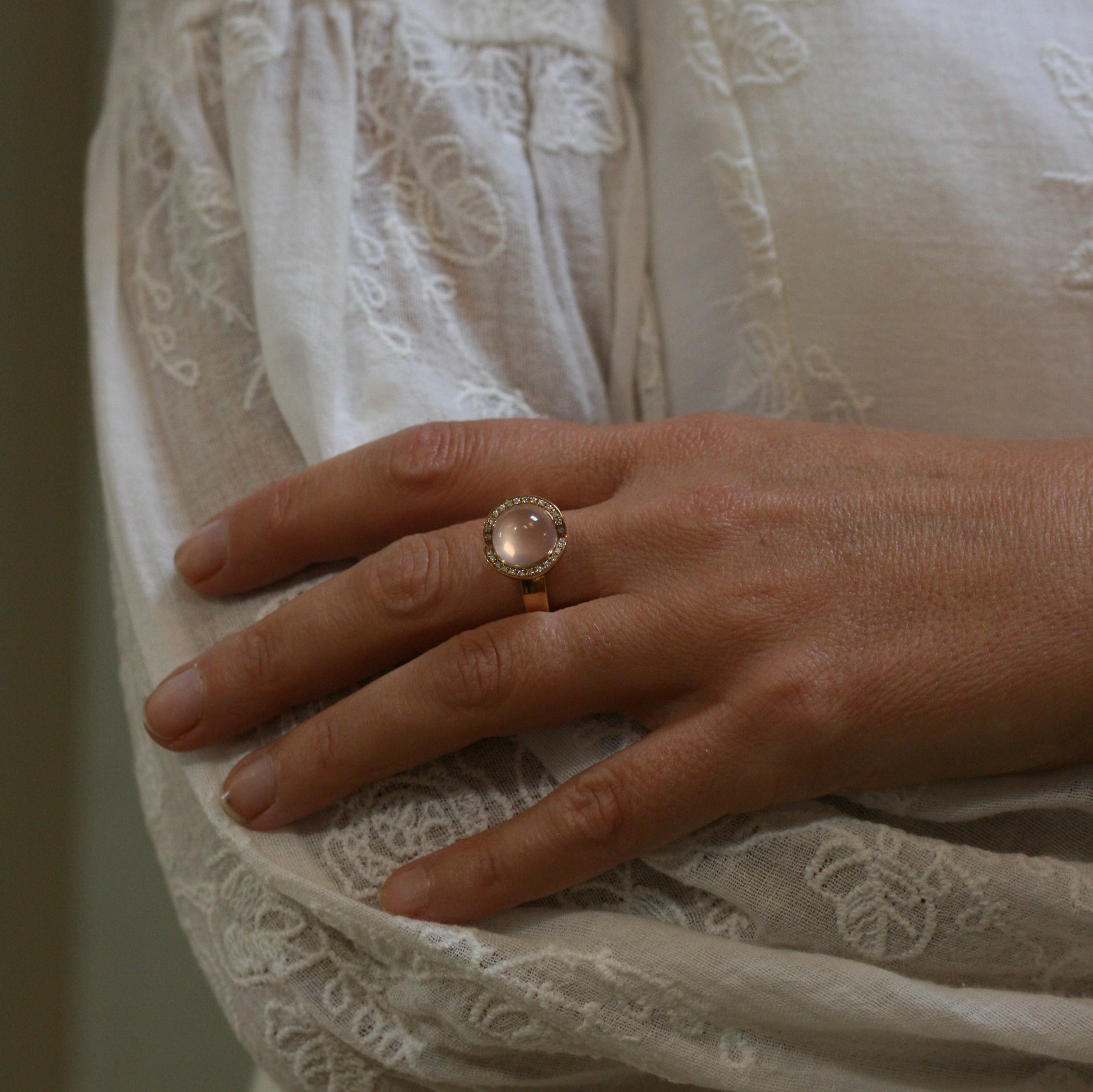 ANDREW GEOGHEHAN 18ct Rose Gold, Rose Quartz & Diamond 'Celestial' Ring