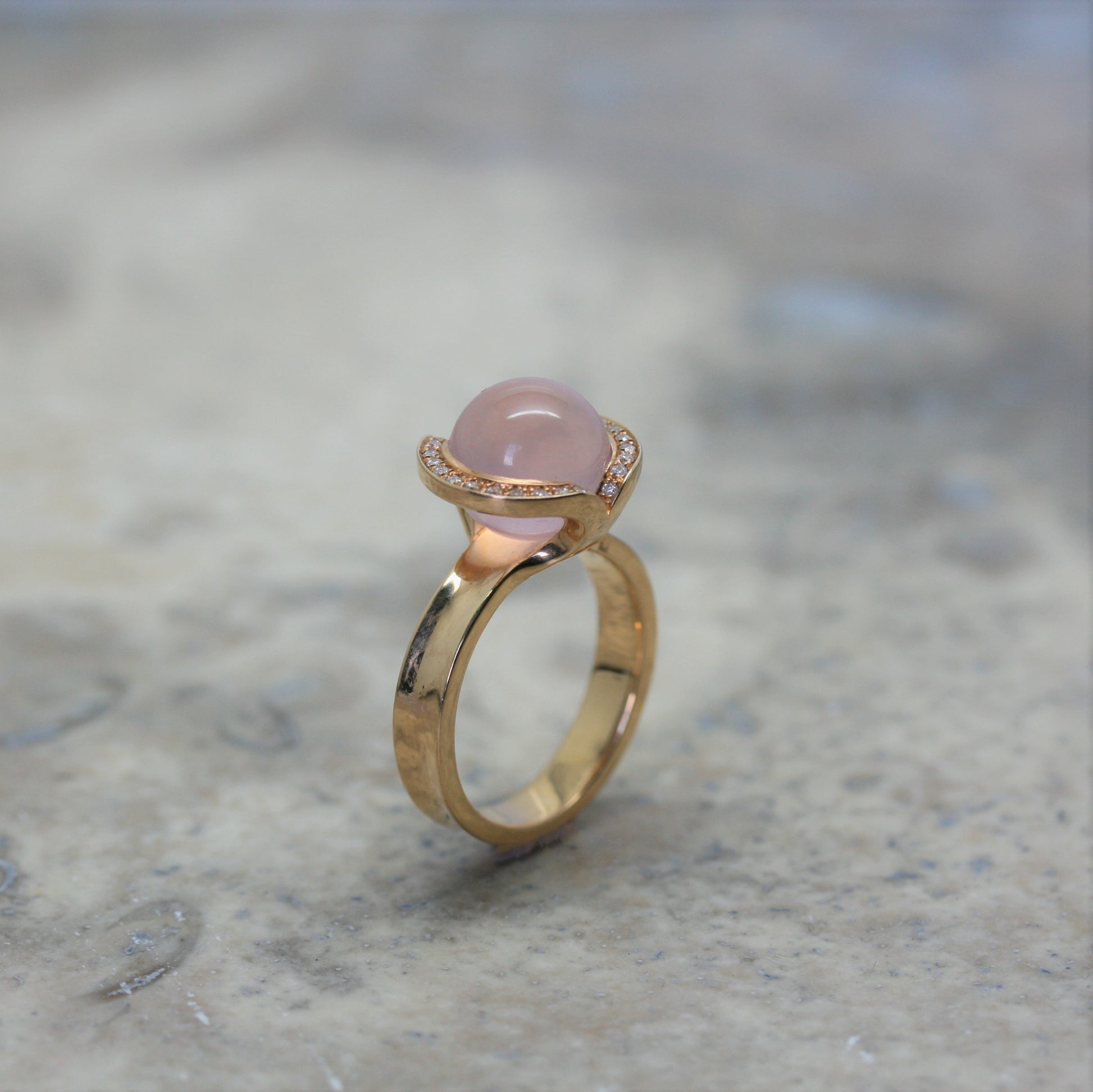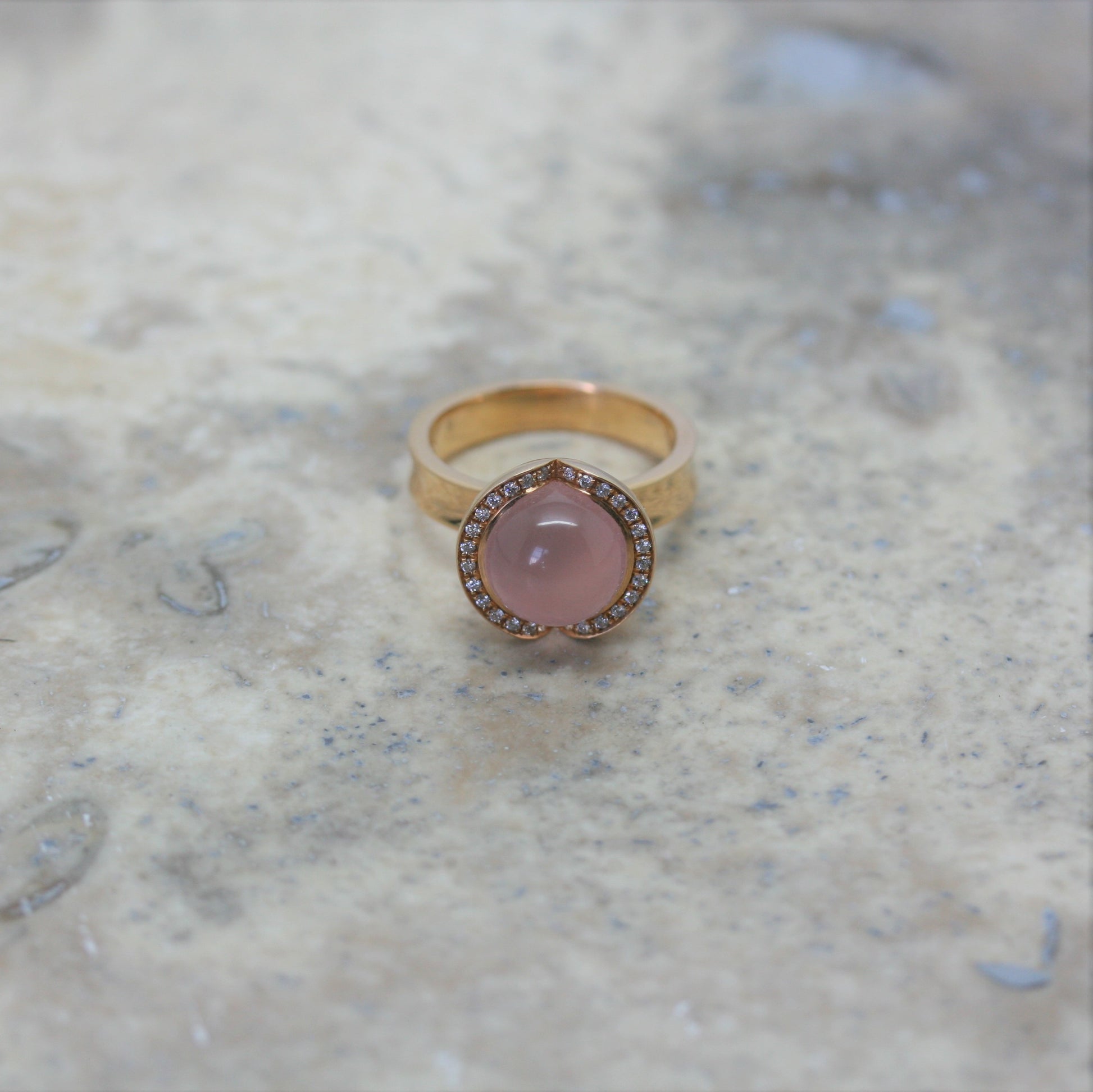 18ct rose gold ring set with a Rose Quartz and Diamonds