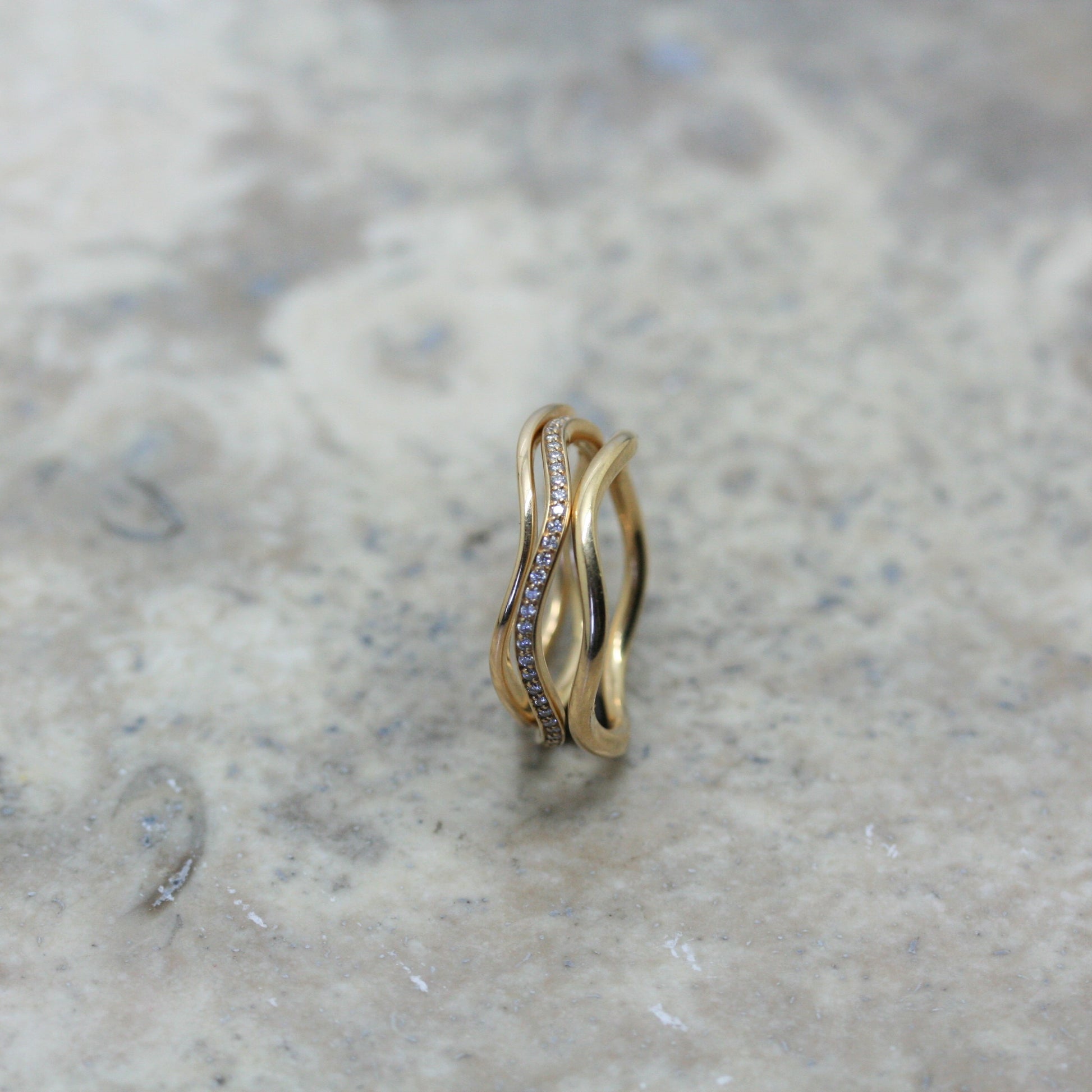 Subtle wave set with diamonds all the way round, worn on it's own or stacked