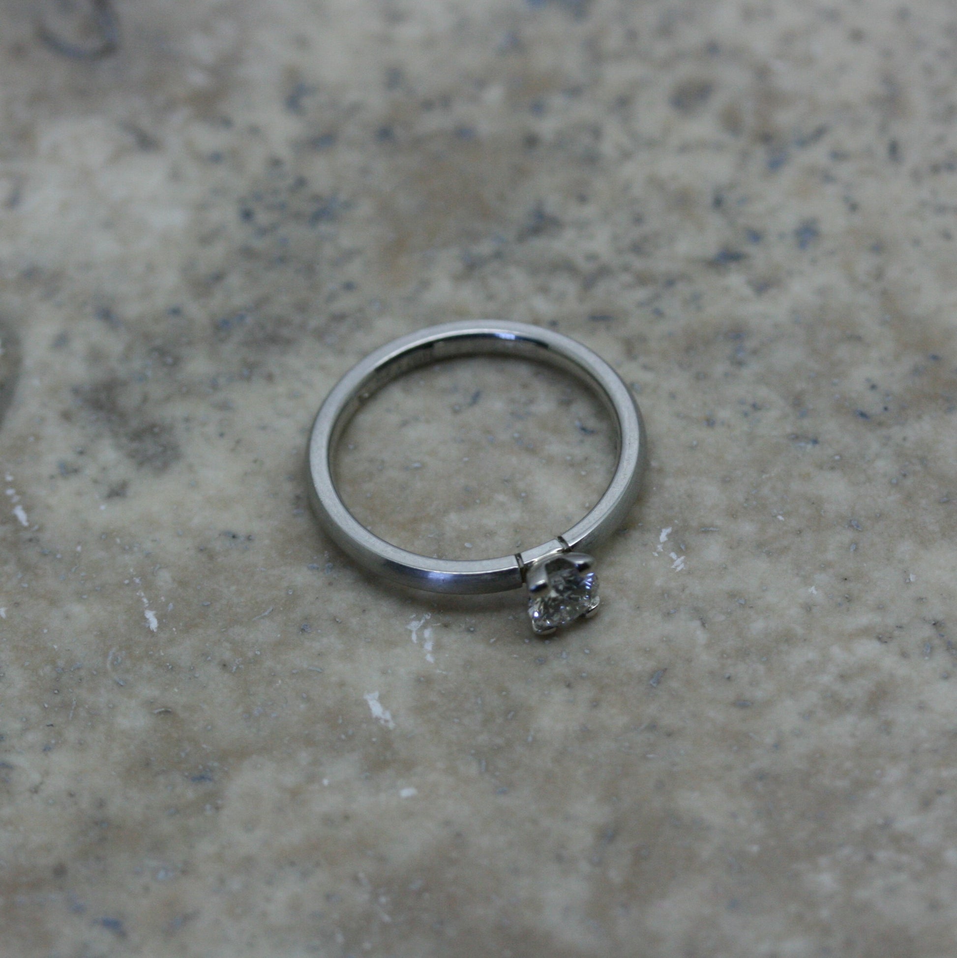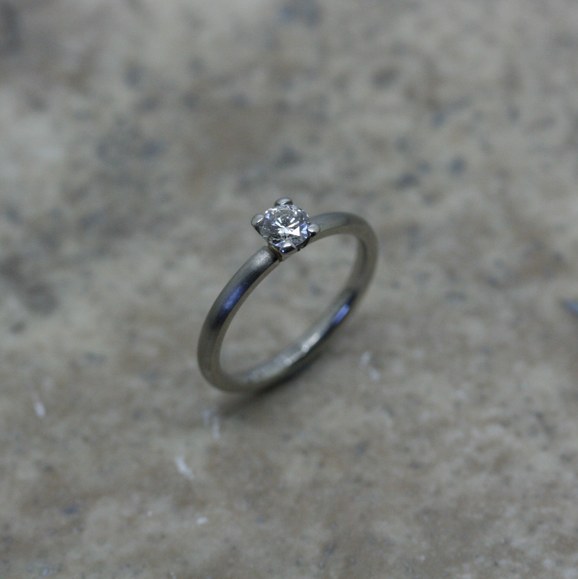 A modern design, brushed Platinum, 4 claw set, solitaire Diamond engagement ring