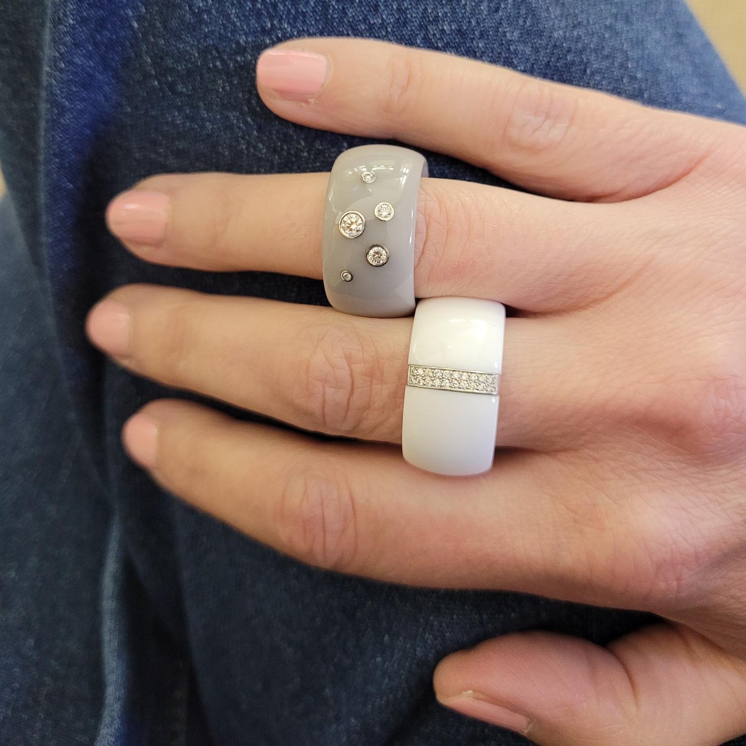 HENRICH & DENZEL Platinum & White Corian 'Diamond' Ring