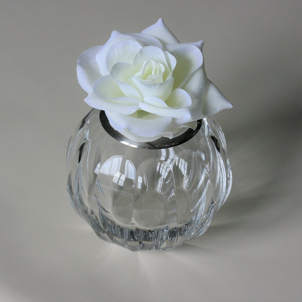 Stylish modern crystal tableware from Kuhn, this crystal vase has a lip of sterling silver around the top. Perfect for a wedding, anniversary or home-ware present