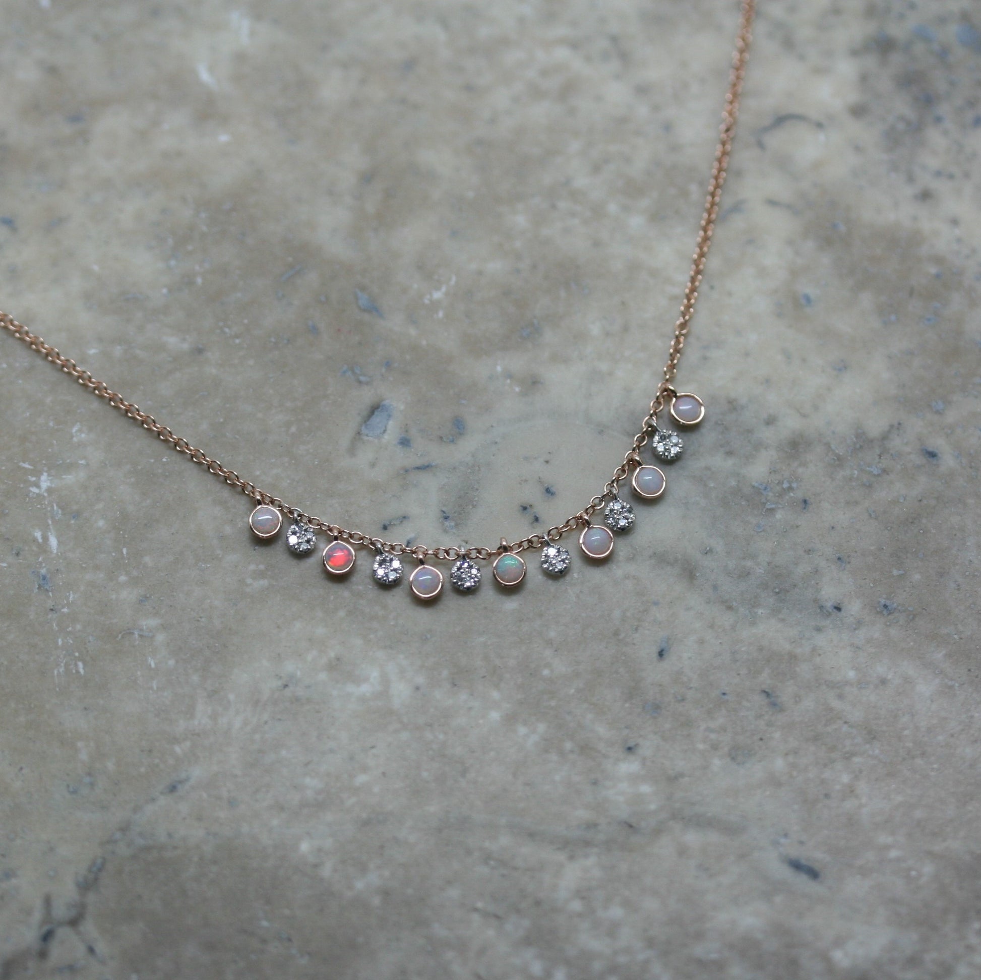 The perfect layering necklace with Opals and Diamonds, Delicate and feminine in 14ct rose gold