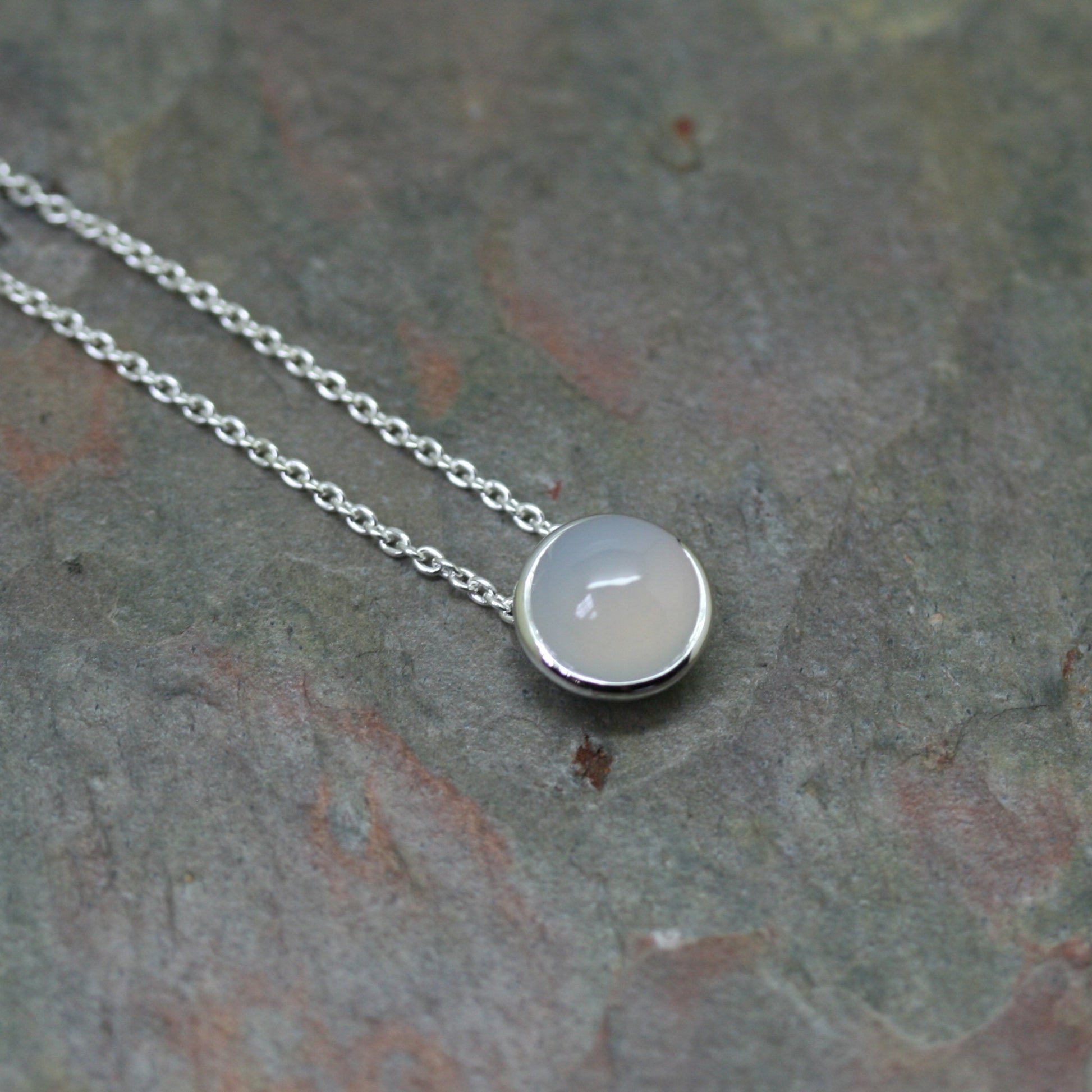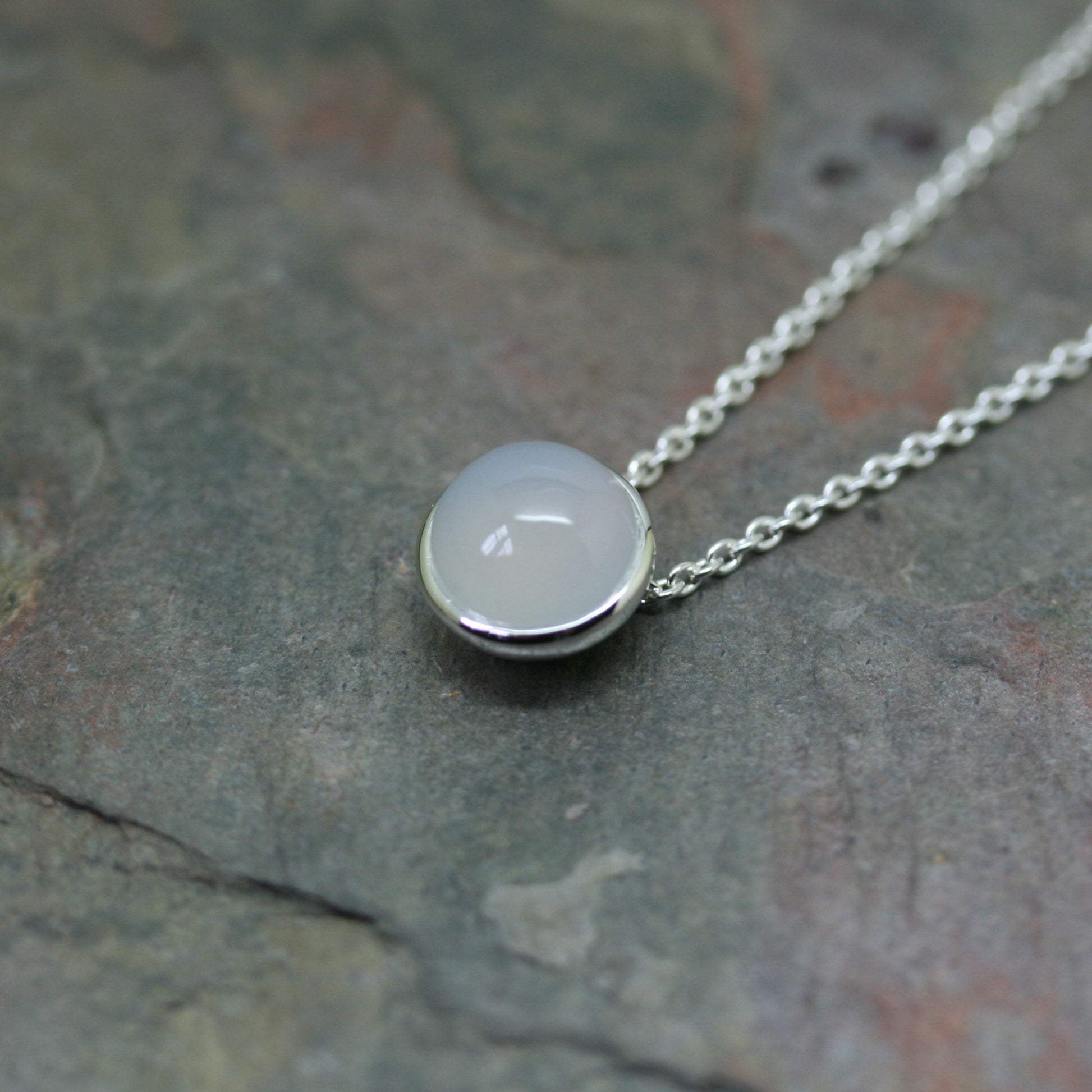 This slightly etheareal Chalcedony necklace has subtle hues of baby blue and pink depending on the light. Set in a rubover setting its perfect to put on and forget about it.
