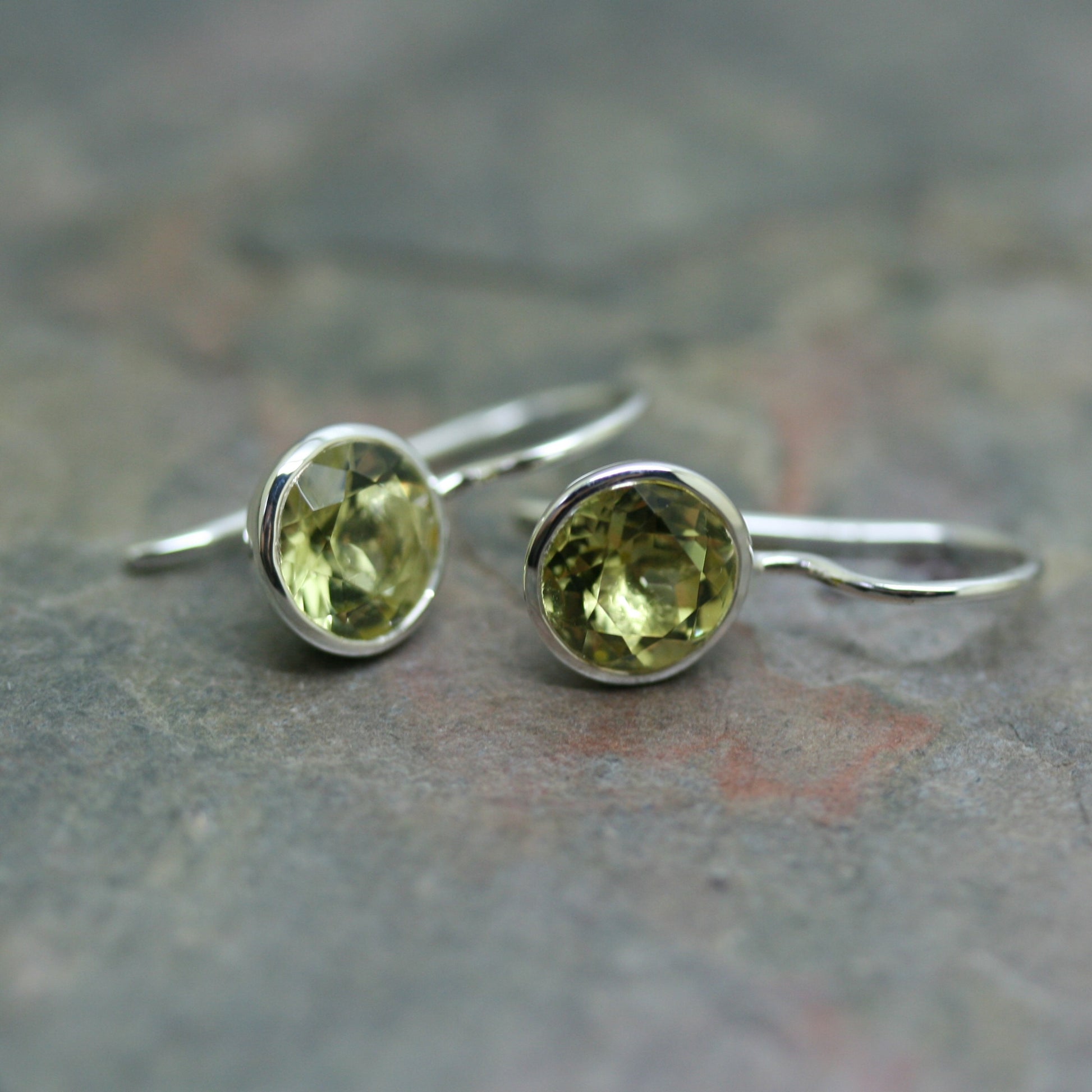 QUINN Beautiful Lemon Quartz or Blue Topaz set in rubover button back settings on a hook wire