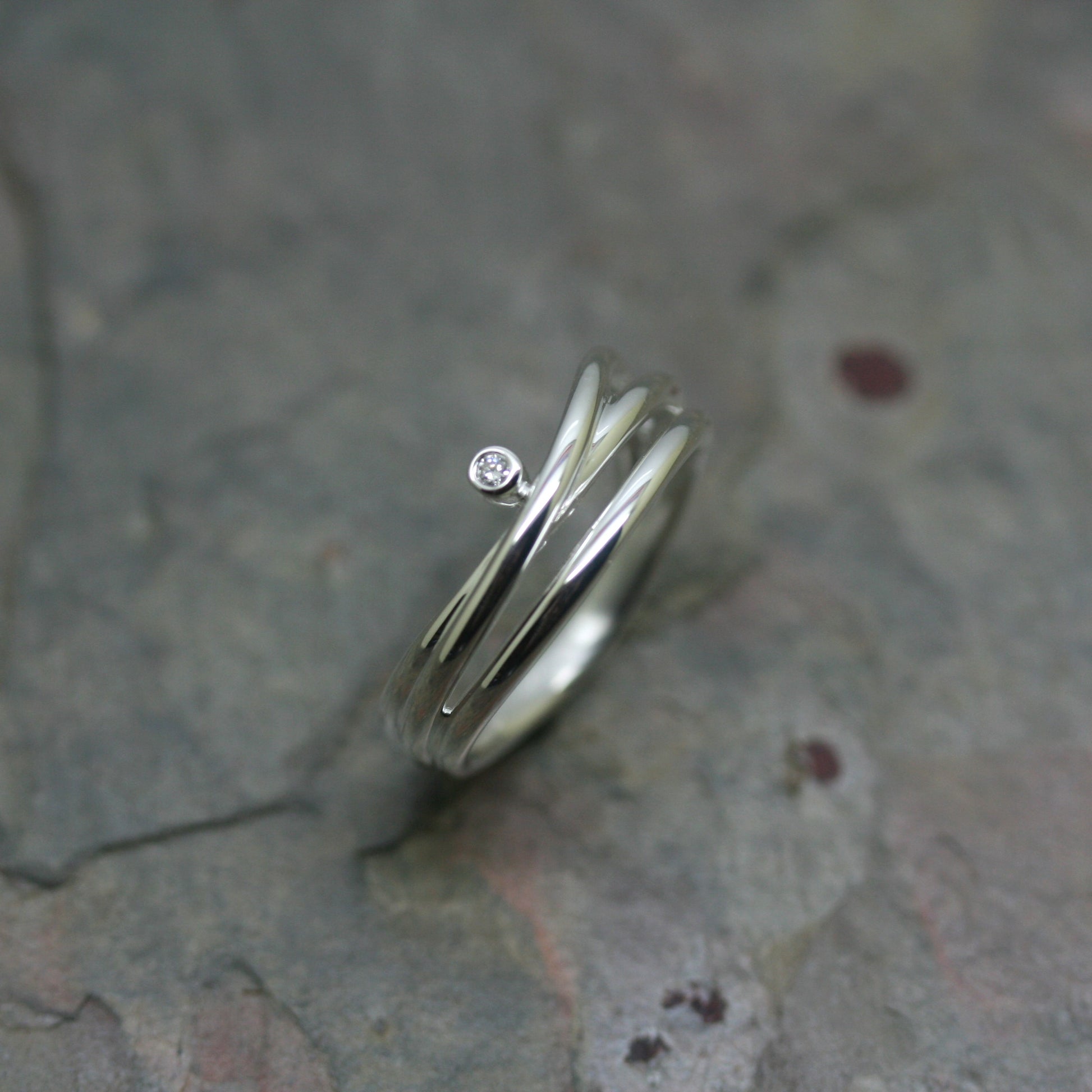 QUINN Sterling Silver 'Diamond Wave' Ring