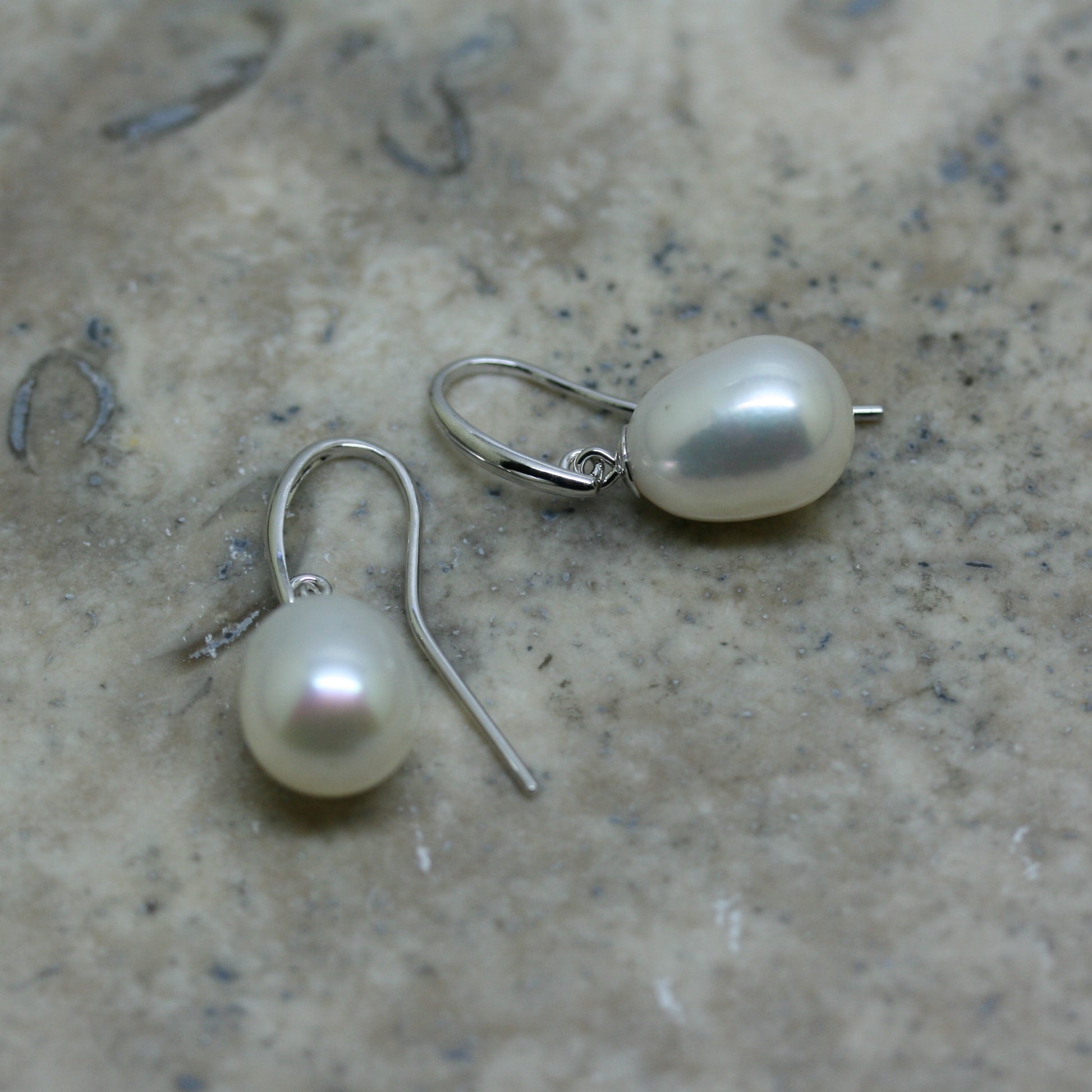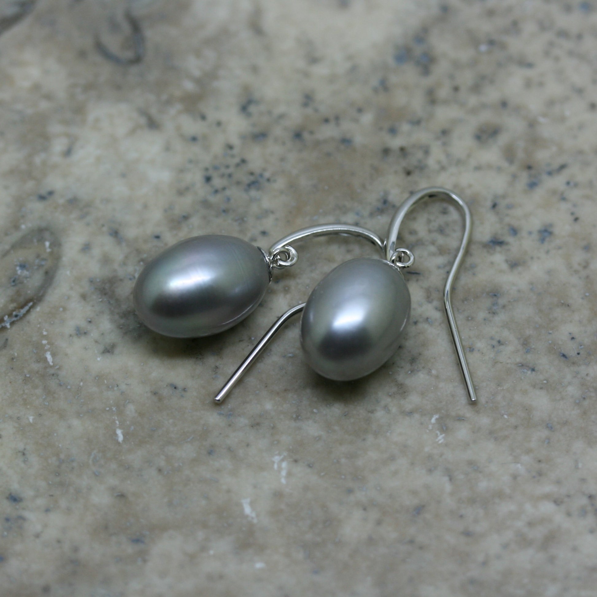 Plain Silver hooks with soft grey or white freshwater Pearl drops
