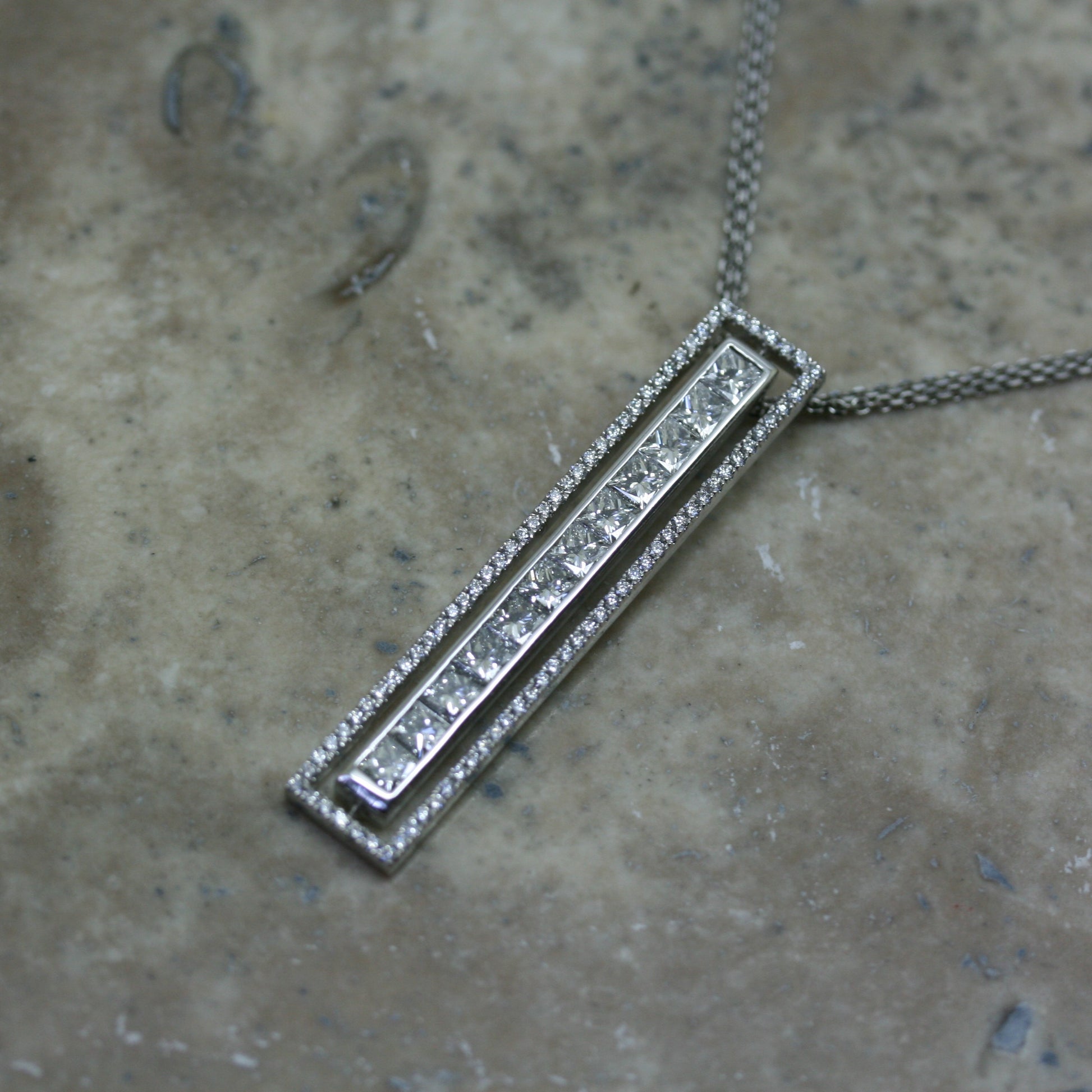 SOLEY 18ct White Gold Diamond Set Bar Pendant on Double Chain
