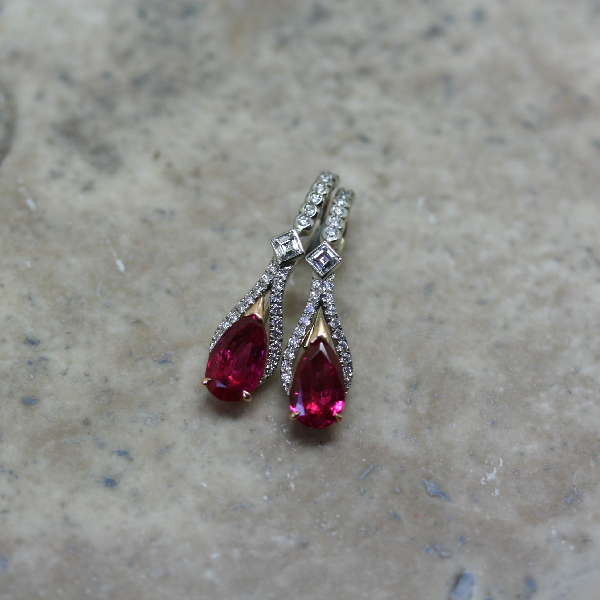 Rubies are set in 18ct rose gold with Diamonds set in 18ct white gold.