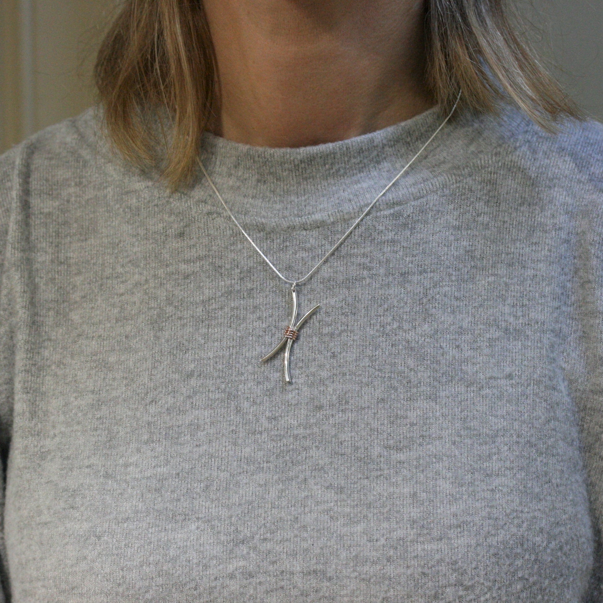 Made from sterling silver and 9ct rose gold, the snake chain runs through a jump ring at the top